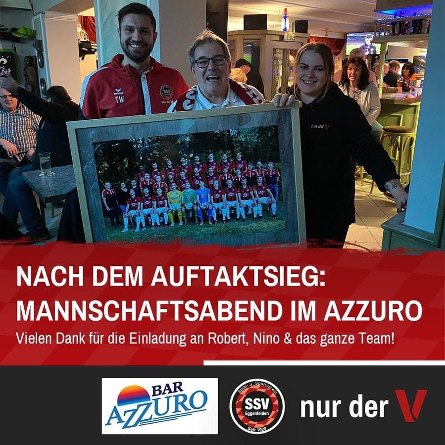 Nach dem Auftaktsieg gegen den FC Holzkirchen ging es für unsere Landesligatruppe zum Mannschaftsabend in die Bar Azzuro. Bei Pizza, Pasta und bester Stimmung wurde nicht nur das Topspiel der Bundesliga genossen, sondern auch der erste Dreier im Jahr 2023 gefeiert.