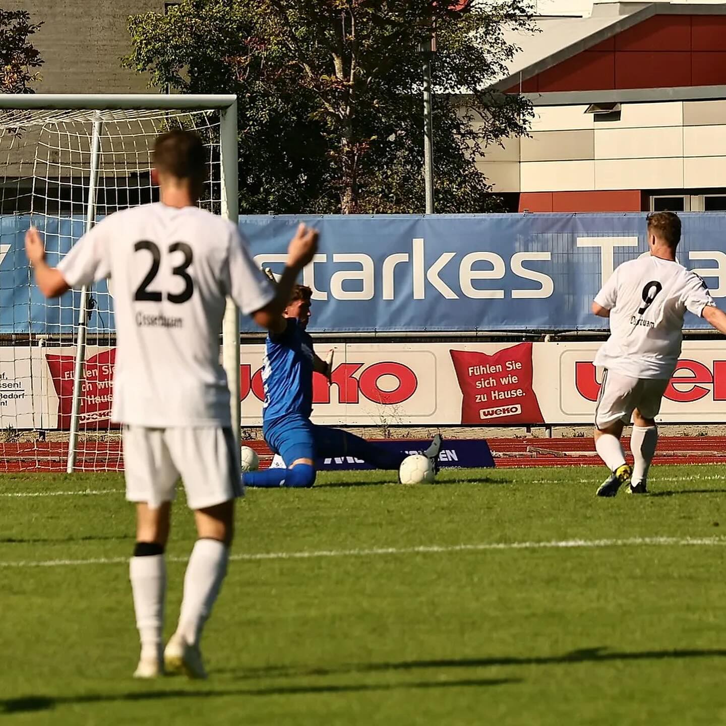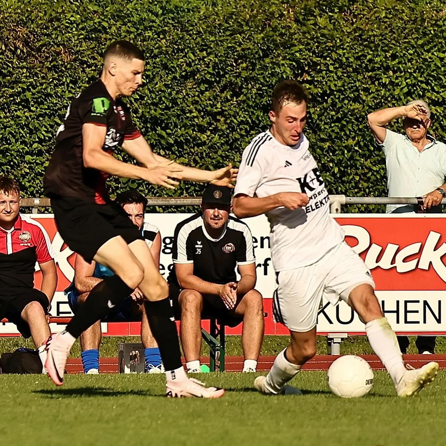 Nachdem man die ersten 45 Minuten klar dominierte und sich mehrere verheißungsvolle Gelegenheiten erspielen konnte – Kelmendi an den Pfosten, Stevanovic scheitert zweimal knapp – war kurz vor dem Halbzeitpfiff Martin Stoller zur Stelle. Über rechts kam die Kugel zu Simon Schie, der zwei Lamer Abwehrspieler alt aussehen ließ und Nico Daffner an der Strafraumkante einsetzte. Dieser ließ den Ball zu Ugljesa Stevanovic abtropfen, der Stoller mit einem feinen Steckpass in Position brachte. Letzterer blieb vor dem Lamer Schlussmann cool und vollendete eiskalt ins lange Eck zur umjubelten Führung.