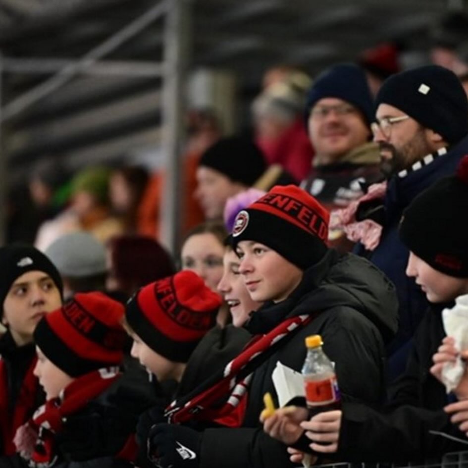 Passend gekleidet mit Mützen und Schals in den rot/schwarzen Vereinsfarben des SSV Eggenfelden, sowie der Black Hawks Passau, unterstützten die Jungs verbündet mit den einheimischen Fans die Passauer Eishockeyspieler lautstark von den Zuschauerrängen.