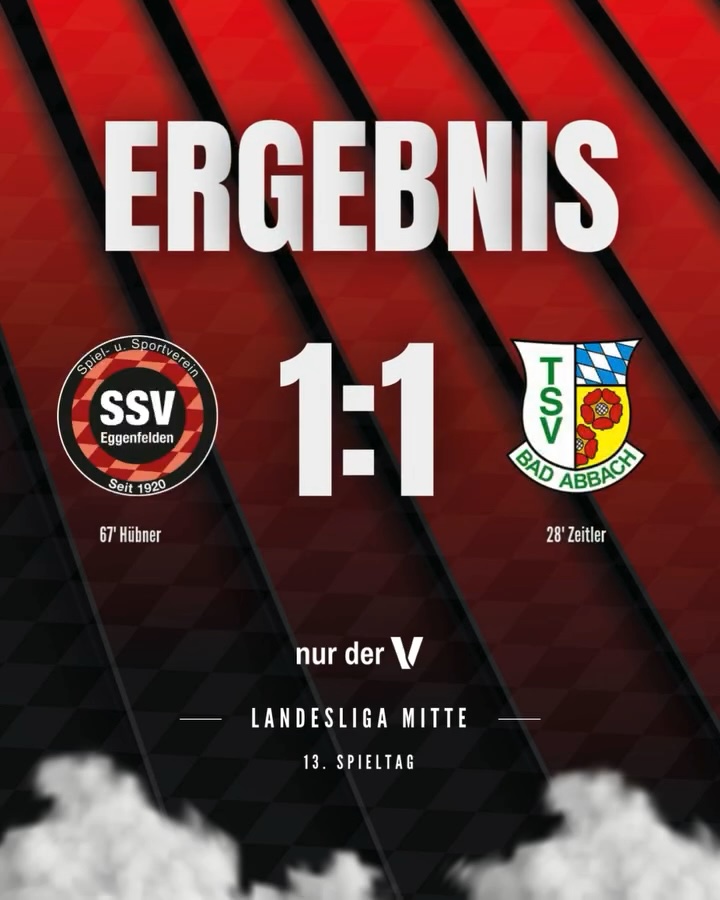 Vor 350 Zuschauern trennte sich der SSV Eggenfelden vom TSV Bad Abbach mit 1:1. Nach der Gästeführung in der 27. Minute sorgte Luca Hübner per Elfmeter für den verdienten Ausgleich. Trotz weiterer Chancen blieb es beim Remis – unser SSV holt damit einen Punkt.