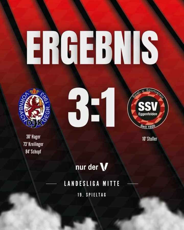 Der SSV Eggenfelden unterliegt der DJK Vornbach mit 1:3. Nach früher Führung durch Martin Stoller kam das Heimteam besser ins Spiel und drehte die Partie in der zweiten Hälfte. Jetzt heißt es: Mund abputzen und am Freitag zuhause gegen den SV Schwandorf-Ettmannsdorf wieder angreifen!