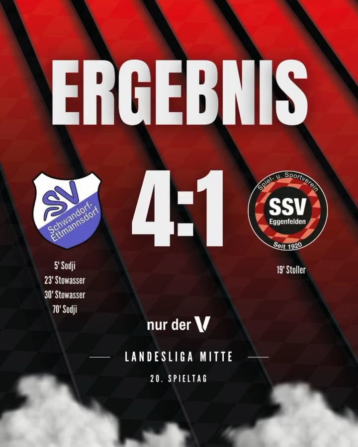 Der SSV Eggenfelden unterliegt dem formstarken SV Schwandorf-Ettmannsdorf mit 1:4. Nach dem frühen Rückstand brachte uns Martin Stoller zurück ins Spiel, doch die Gäste zeigten ihre Qualitäten und entschieden die Partie schon vor der Pause.