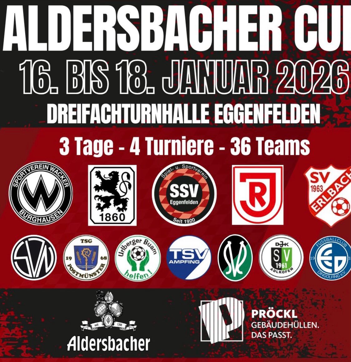 Ein großes Dankeschön geht an unsere großartigen Sponsoren, ohne die dieses Event nicht möglich wäre: Vielen Dank an die Brauerei Aldersbacher, Pröckl Gebäudehüllen und alle weiteren Unterstützer, die zu einem späteren Zeitpunkt noch bekannt gegeben werden.