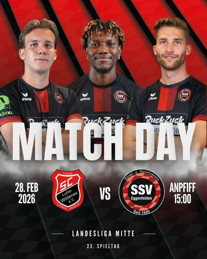 🔴⚫️ MATCHDAY 23 ⚫️🔴 Am Samstag, 28.02. geht’s für unseren SSV auswärts zum SC Luhe-Wildenau! 💪⚽ 👉 Anpfiff: 15:00 Uhr Seid dabei und unterstützt unsere Jungs lautstark! 🔥🙌 #nurderv #ssvsocialmedia #landesligamitte